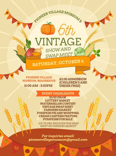 If you have inquiries regarding being a vendor for the Farmer's Market, please contact pioneervillagemuseum@gmail.com.