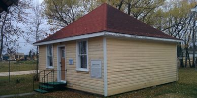 Originally located on Fourth Street, this tailor shop (circa 1928), while not very large, served as the headquarters for Anton Bryk as he worked as a tailor, originally making uniforms for the Royal Canadian Air Force and then continuing to serve the Beausejour community for all civilian tailoring needs for over 40 years.